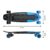 Das Design ist wirklich ein wahrer Hingucker: Mit einem Mix aus mattblauen und schwarzen Elementen wirkt das Board sehr futuristisch und modern. Der Akku an der Unterseite ist in die Länge gezogen und unauffällig integriert, sodass man es auf den ersten Blick gar nicht für ein Elektro-Longboard halten würde. Ebenso auf der Unterseite erkennt man einen Farbwechsel sowie das Logo und einen stylischen Schriftzug des Herstellers. Das Griptape auf der Oberseite wirkt sehr fein und sauber; auch hier ist ein Logo und ein Schriftzug in der Mitte des Longboards zu sehen.